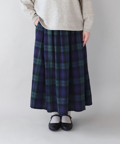 軽くて柔らかい起毛したコットンリネンを使用したチェックギャザースカートです。