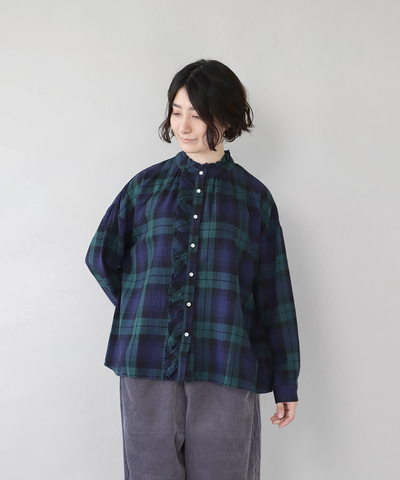 YURK geniet van|起毛コットンの フリルカラーブラウス