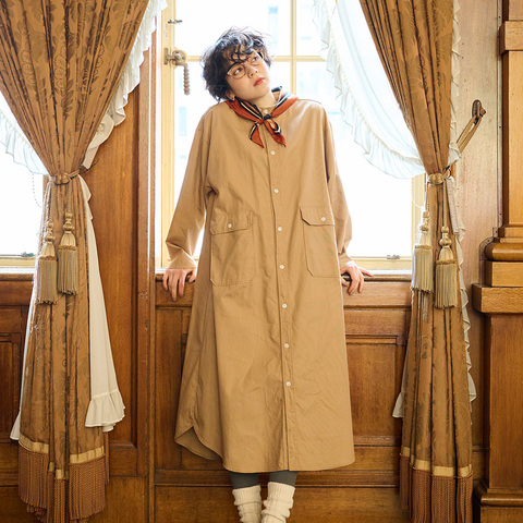 しっかりと織り上げられた上質なコットン素材。ほどよい厚みとハリ感があり、自然と美しいシルエットを引き立ててくれます。清潔感のある表情とやわらかな肌触りを兼ね備えており、デイリーにはもちろん、きちんと感を求めるシーンにもぴったり。洗いをかけることでナチュラルな風合いが加わり、大人の女性にふさわしい上品で落ち着いた印象を演出します。