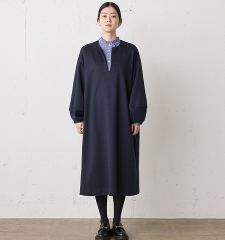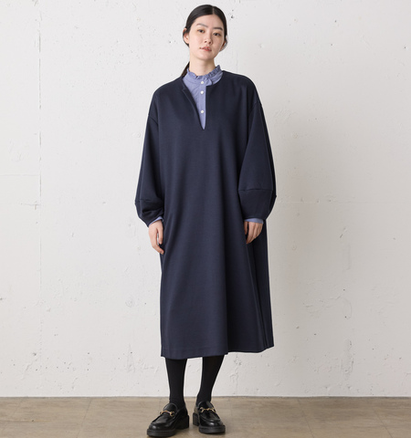 Gymphlex|コットンタイプライター バンドカラー 長袖 ワンピース gy-g0107otd-kr
