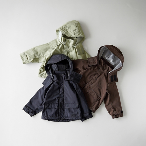 風をしっかり防ぎ、雨にも強い3層構造の撥水生地を使用したキッズ用シェルジャケット。丸みのあるコクーンシルエットが、動きやすさと柔らかな印象を両立します。