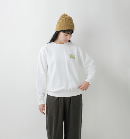 架空のジャズバンド/ラジオ局をテーマにしたオリジナルアートをプリントしたスウェット。印象的なグラフィックは、シンプルなスタイリングのアクセントにぴったり。アートのように着こなせる1枚です。