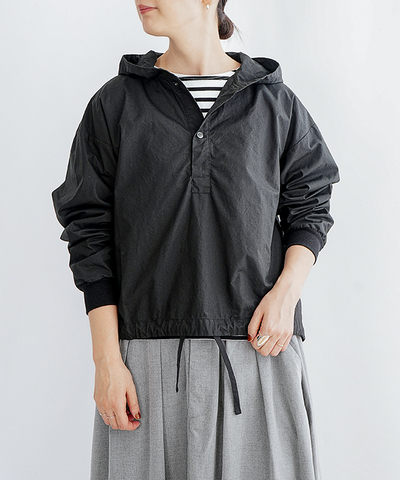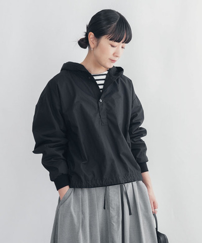 ・手首は風通りがなくカジュアル感を表現したリブ袖。フード付きなので、シャツパーカーを着る感覚です。