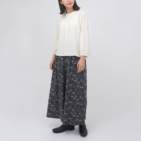 スカートのように見えて、実はパンツ。たっぷりとした分量感で、動くたびにふわりと揺れる人気の“ハカマパンツ”です。