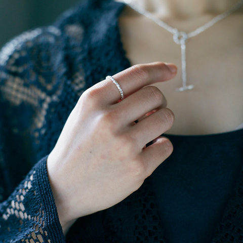 細やかなカットが光を受けてきらめく、シルバービーズリング。