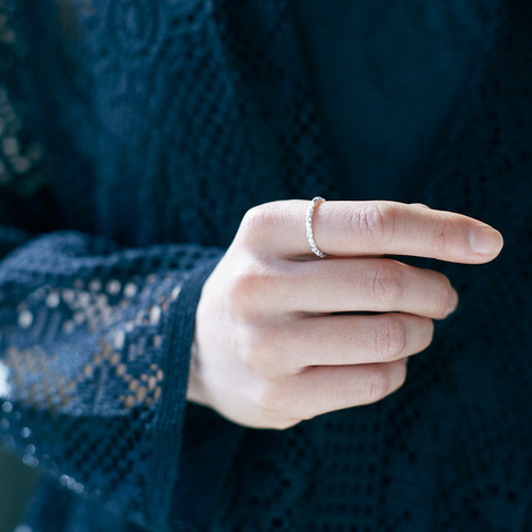 繊細ながらも存在感があり、単体でも重ね付けでも手元にほどよい輝きを添えます。