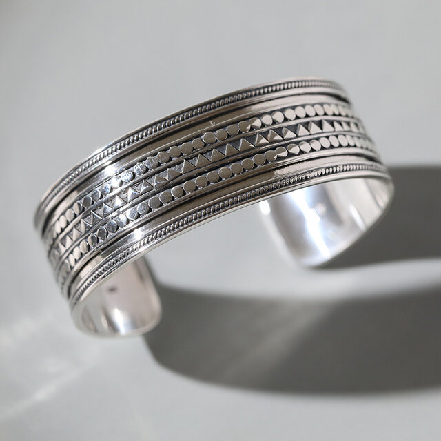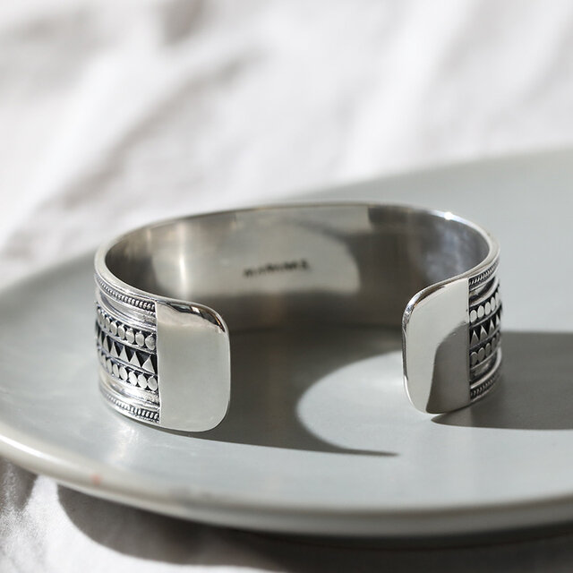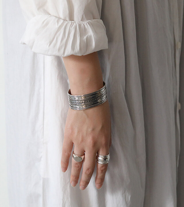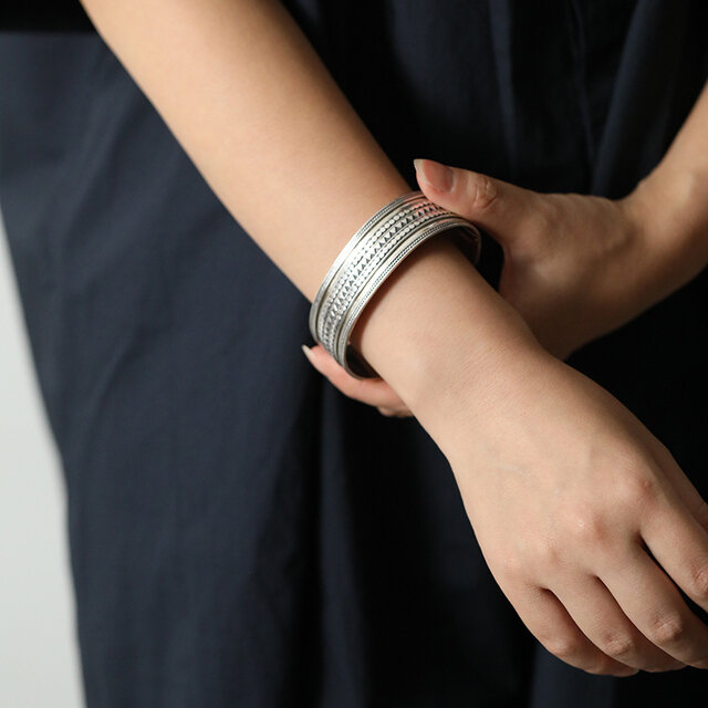 個性的でありながら、ハード過ぎず上品さも感じられコーディネートに溶け込みやすいブレスレットです。