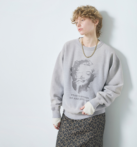 フロントには、マリリン・モンローの名言「FEAR IS STUPID. SO ARE REGRETS.(恐れも後悔も愚かだ)」をプリント。前向きに生きる姿勢を感じさせるメッセージが、シンプルなデザインに芯の強さを添えます。