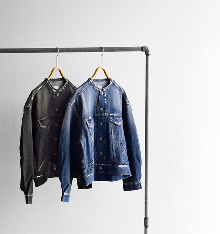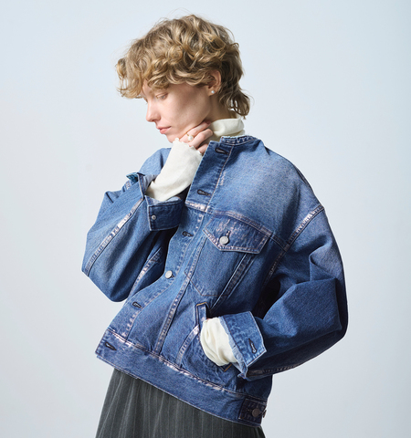 Si-Si-Si|ブリーチ デニム バンドカラー ジャケット “BASIC DENIM JACKET” n-603br-fn