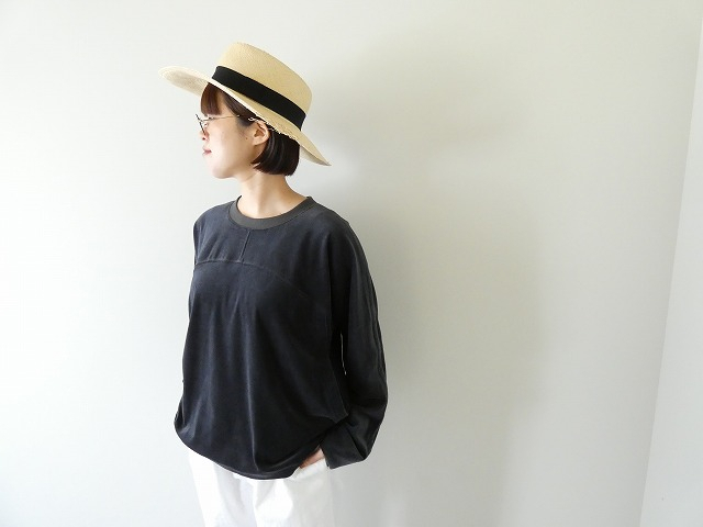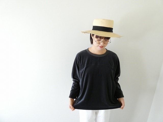 パイル編みの生地をシャーリングカットすることでベロア状にしています。カットすることで程良い光沢感も生まれ、上品な印象に仕上げています。身ごろから袖をつなげ動きやすさと切替にポケットを付け実用性とデザインを兼ね備えたアイテムです。