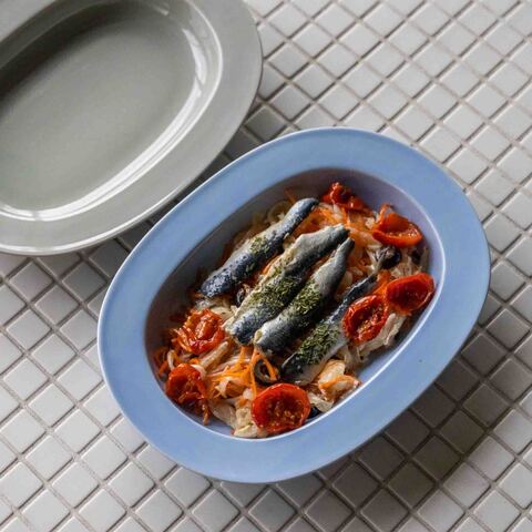 楕円のボウルに盛ると、なんとなく地中海の料理の雰囲気が漂ってきて美味しそう。