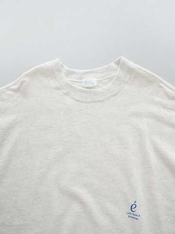 バックには架空のカフェをイメージしたロゴをプリントしています。"En conge" は、フランス語で休暇中という意味。のんびりとしたお家時間にも着たくなるプリントです。