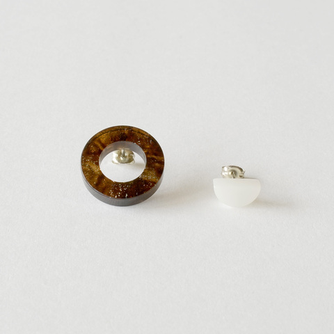 耳元にぐっと目を惹く透明感を。めがねフレームの端材を使用したアクセサリー