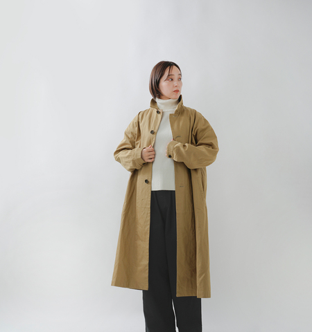 羽織るだけで雰囲気が決まり、襟を立てたスタイルでは、凛とした印象のアレンジも可能です。1枚仕立ての軽やかさで、秋から春までロングシーズン活躍します。