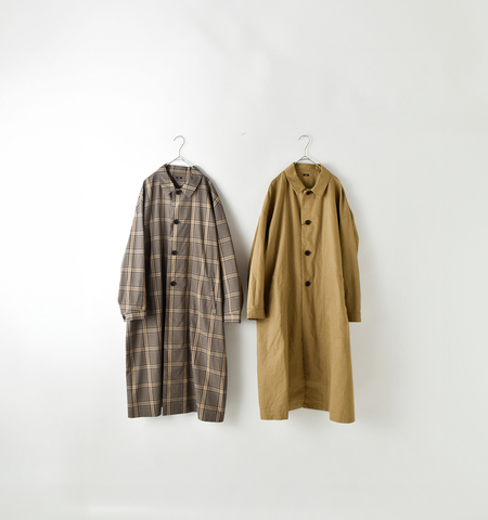 tissu(ティシュ)より、ツイル/グレンチェックステンカラーコートのご紹介です。