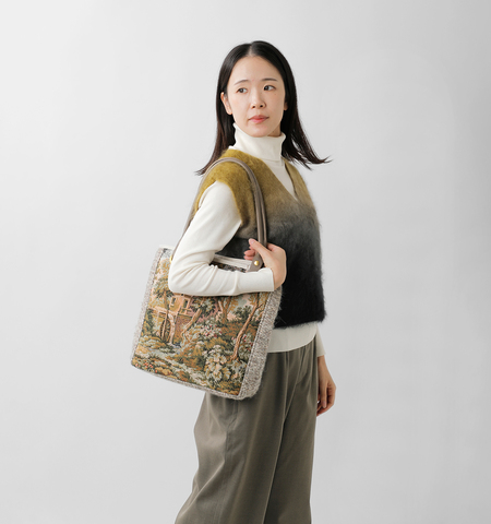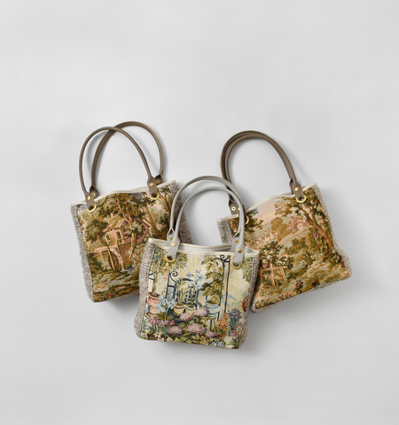ノスタルジックな風景を織り上げた、まるで絵画のようなトートバッグ。英国とフランスの伝統的な織り機で丁寧に仕上げられたジャガード織りを贅沢に使用しています。