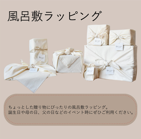 シンプルながらも温もりを感じられる、風呂敷でのギフトラッピングをご用意しました。