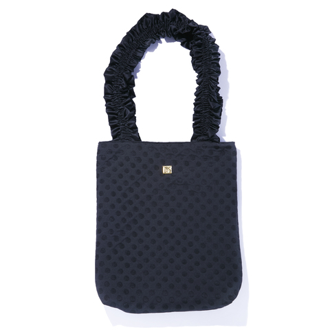 裏地の濃紺は、深みのある大人のムードを演出。持ち手のギャザーと相まって、さりげない甘さが手に入ります。