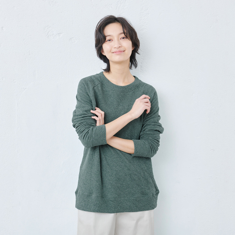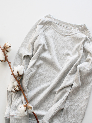 糸は全てオーガニックコットンを使っているため、環境とお肌にやさしく、毎日着たくなる特別な素材感です。