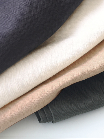 10番手の太い綿糸を使って織り上げた厚手のヘリンボン生地。太い糸で高密度に織り上げているから、肉厚でしっかりした質感。ワークウェアなどによく使われる生地感です。
