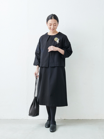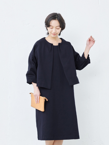 フォーマルに必要な要件は、「上品に見える事」「長く着ても疲れない事」「デイリーにも使える事」私たちはその3点に重きを置いています。フォーマルウェアって華やかで目立つものが多いですよね。でも、その時にしか着られないし、そこまで着飾るのもどうかと…別々にも使える上質カットソーのジャケットとワンピースのフォーマル過ぎないフォーマルウェアが完成しました。