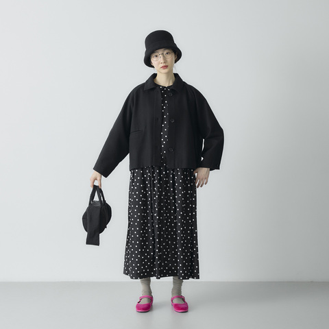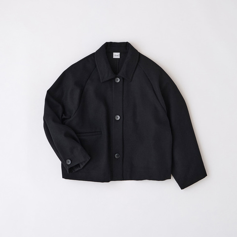 上品で柔らかな肌触りと軽さがポイントの、リサイクルウールフランネル生地を使用したショート丈のジャケットです。