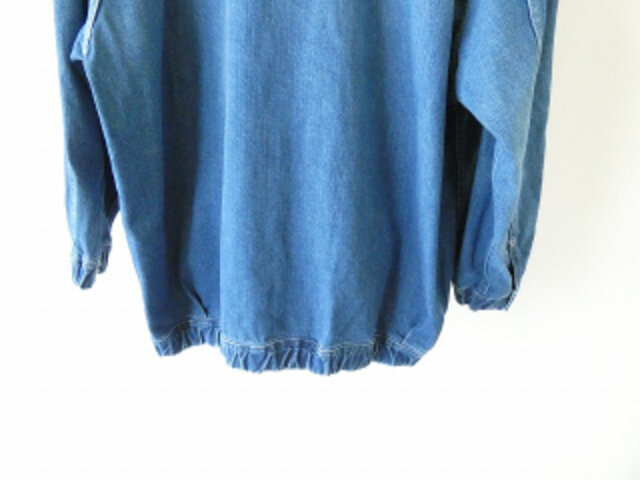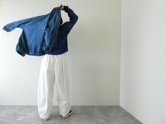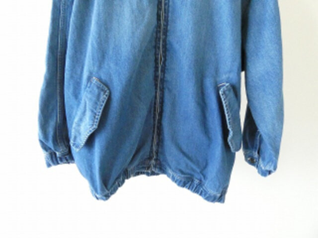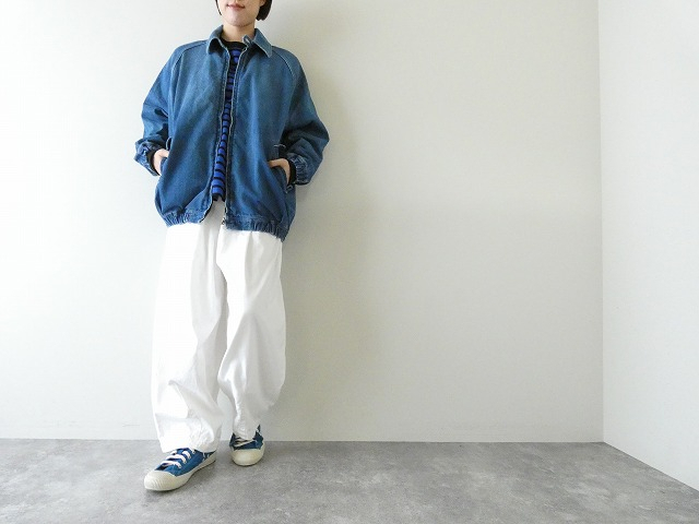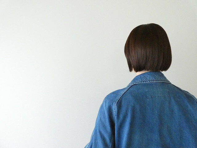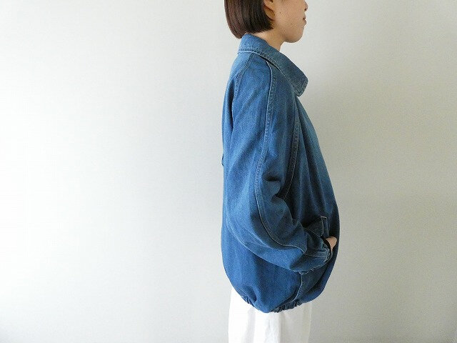 ボックスシルエットのデニムブルゾン。肩をややドロップさせたゆとりのあるサイジング。