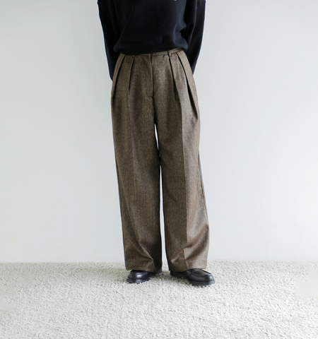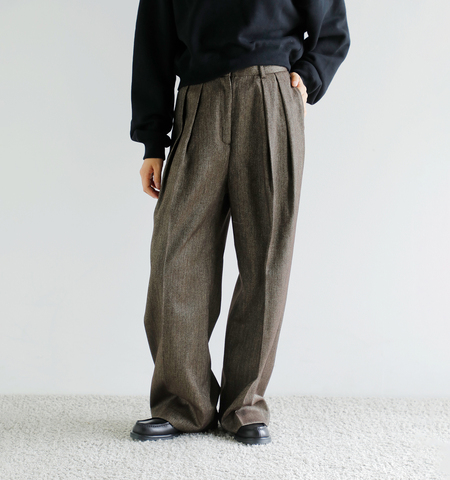 カジュアルなトップスとスタイリングしてもパンツの上質な素材感とシルエットがバランスを取ってくれます。