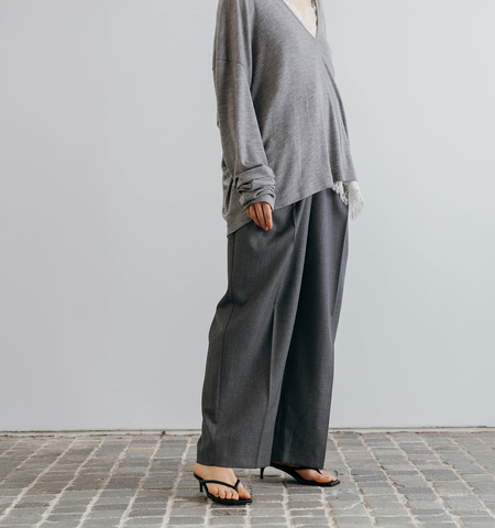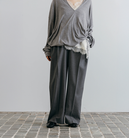 クレドナの定番スラックス“THE C ICHIGUN PANTS”。26SSシーズンからはグレーとブラックが登場します。毎日クローゼットから選んでしまうようなスラックスに。