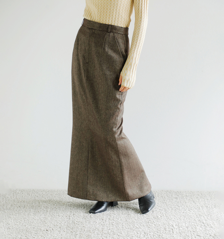 何十年も前のウール100の古き良き素材を使用したスカートがヴィンテージショップに並んでいるように、何年たってもクローゼットの中のイチグンのスカートでいられる。この一枚があればどんなトップスにも合わせられる。生涯共にしたいスカートになるように願いを込めて。