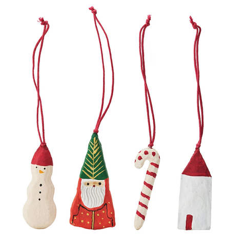 紙細工「ペーパーマッシュ」で作られた、ホリデーオーナメント。