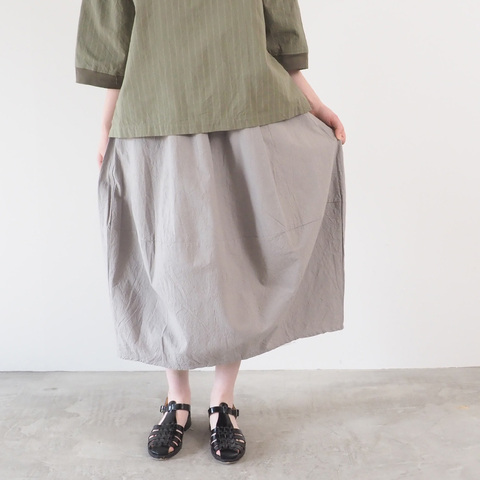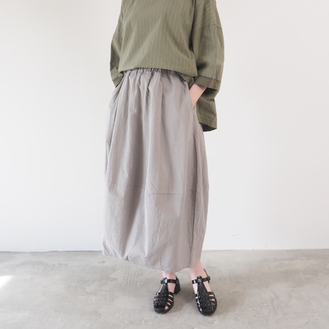 ふんわり包み込むエッグシルエットが特徴のシーチングハンドワッシャー エッグスカートです。裾にかけてゆるやかに丸みを描く、卵のような立体的なライン。広がりすぎないのに、身体のラインを拾わない絶妙なバランスで、自然と女性らしいやさしい雰囲気をつくります。