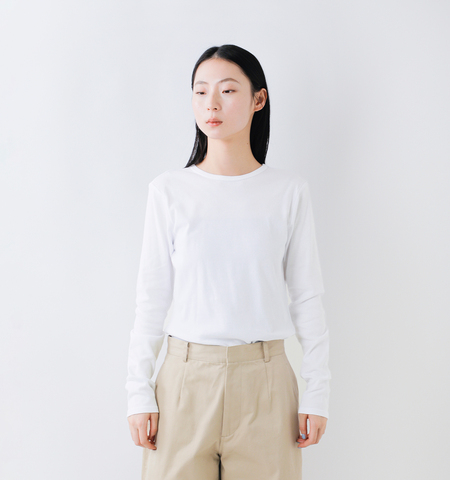 tumugu|コットン ノヴァテレコ ハイネック カットソー フリル 長袖Tシャツ トップス 重ね着 TC20103-WA 0917 ツムグ