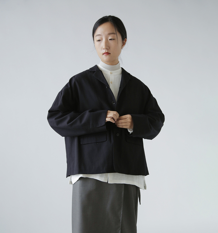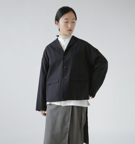 モードなコーディネートにはもちろん、カジュアルなドロップショルダーのラインと、ほどよくくたっと、やわらかい質感の生地で、カーディガンのようにサッと気軽に羽織ることができるデイリーユースなジャケットとしても活躍してくれる一着です。