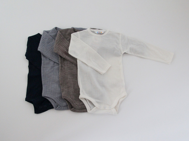 デンマークの肌着ブランド・joha(ヨハ)の中でも定番の人気を誇る、メリノウールのベビーロングスリーブ。