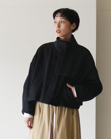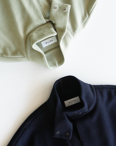 背中には大きなタックが入り、裾に向かってふんわりと広がるシルエットが女性らしい上品な佇まいを引き立てます。SETTOの人気商品であるガンコートがモチーフで、肩のガンパッチがさりげないアクセントを添えています。