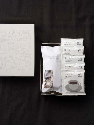 至福のひとときを贈りものに。どなたにも納得してもらえるようなコーヒーを目指して海ノ向こうコーヒーさんに作っていただきました。「わざマートオリジナル ドリップコーヒーバッグ」と、厳選したドライフルーツがぎっしり詰まった「砂糖も卵もバターも使わないシュトレン」がセットになった、もらって嬉しくなるようなギフトセット。