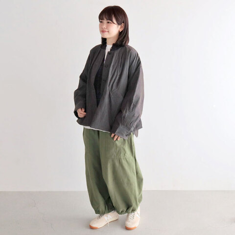 一度洗いをかけ、ラフな風合いに仕上げた着飾らない服。素材選びから商品になるまでのストーリーが感じられるような…シンプルだけど一つ一つにこだわりを持ち、着る度に体になじむ、お気に入りの一枚になるように。デザイナー独特の価値観から生まれるデザインは、他と被ることのない唯一無二の存在。コーディネートの中に一つでも取り入れることで、自分らしさを目一杯に表現できるブランドです。