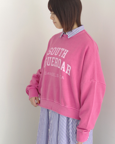 “SOUTH FIGUEROAR “ とプリントされたカレッジ風のピグメントスウェット。
