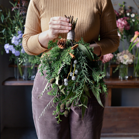 「ナチュラルスワッグ」は、コニファーやユーカリなどの香り高いグリーンに、