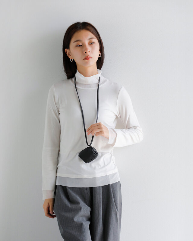 ナチュラルで落ち着いたムードの中に、モードなエッセンスを添えた雰囲気でアクセサリー感覚で持てるポーチ。