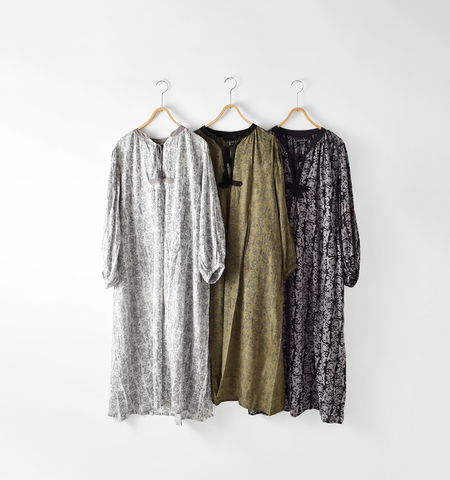 ひとつひとつにわずかな表情の違いが生まれるのは、手作業ならでは。織りのムラやプリントの揺らぎが、着る人それぞれの個性を引き立てます。