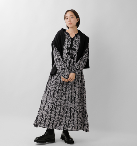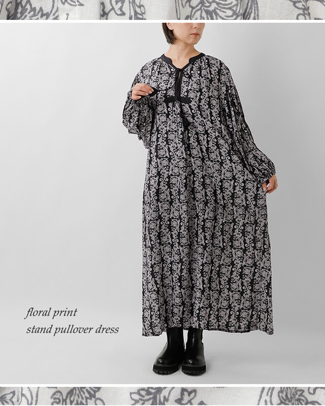 Soi-e|花柄 プリント スタンド プルオーバー ワンピース 821428-nk