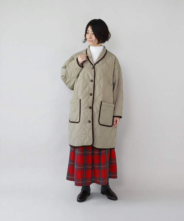YURK geniet van|ショールカラーの パイピングキルティングコート