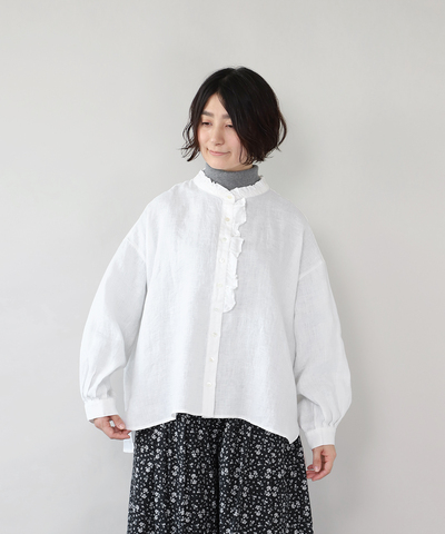 YURK geniet van|起毛コットンの フリルカラーブラウス