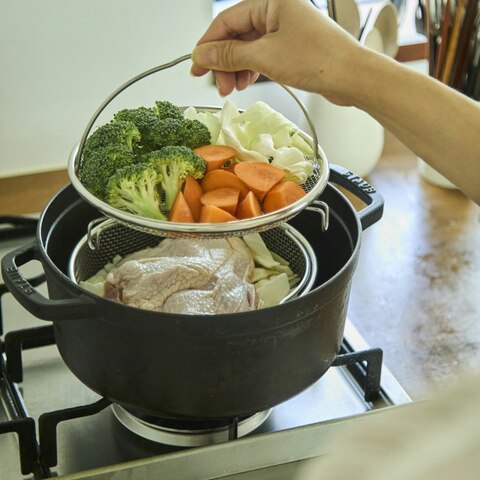 蒸し物を作りたいけれど、木製のせいろはお手入れが気になったり、収納スペースが必要だったりと、ハードルが高く感じられる方もいらっしゃると思います。
