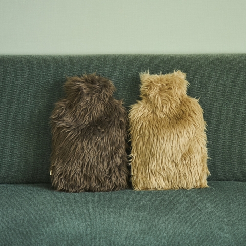 「HOT WATER BOTTLE NUKKA」は、そんな湯たんぽの見た目問題を上品でシックな印象のフェイクファーカバーを付属することで解消しています。肝心の本体は、環境に優しい天然ゴム製で柔らかく、カバーの着脱もラクちんです。