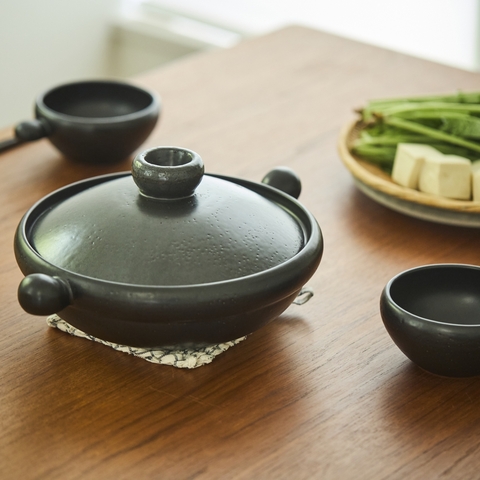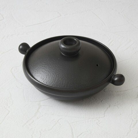 こちらの良さは、この問題を素材のチカラで解決してくれるところにもあります。陶器の素材となっているのは、萬古焼が作られる地域のそばで採れる、蓄熱性と保温性に優れた土。その実力は、一度煮えれば火を止めてもしばらく余熱でぐつぐつ状態が続く程です。加えて、持ち手が丸く大きめで握りやすいので、食卓への移動も安心。肉じゃがのような煮物も、そのまま食卓に出せばあたたかいままお楽しみいただけます。