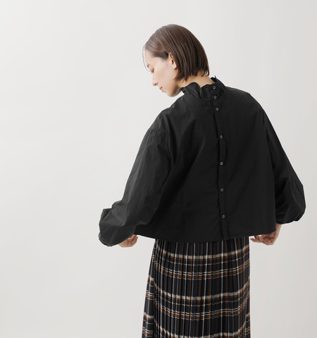 HAVERSACK|コットン 墨染ブロード バンドカラー フリル シャツ 322526-mn