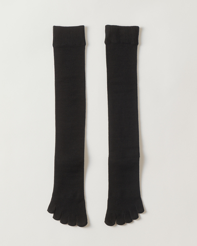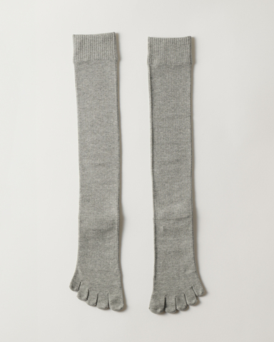 ふくらはぎは浮腫みを軽減し足をすっきりと見せてくれる段階着圧、足先は5本指仕様の爽健美ソックス。